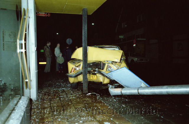 Aanrijding met lantaarnpaal en een pilaar van de bloemenwinkel op de Binnenweg ter hoogte van de Zandvaartkade
