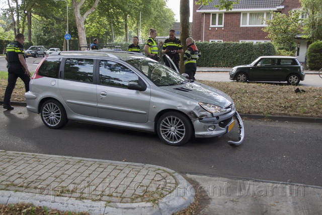 Personenauto over de kop na aanrijding op de Glipperdreef ter hoogte van de Sportparklaan |