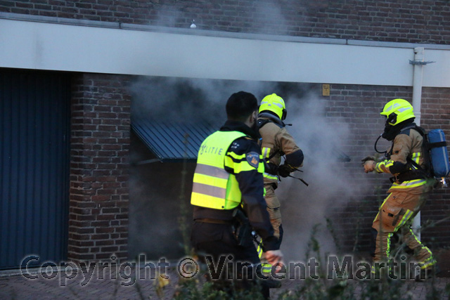 Container brandje in een garagebox aan de Brabantlaan onder een flat. |